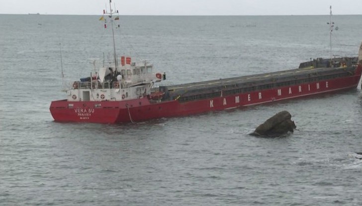 Заседналият край Камен бряг товарен кораб се е наклонил през нощта