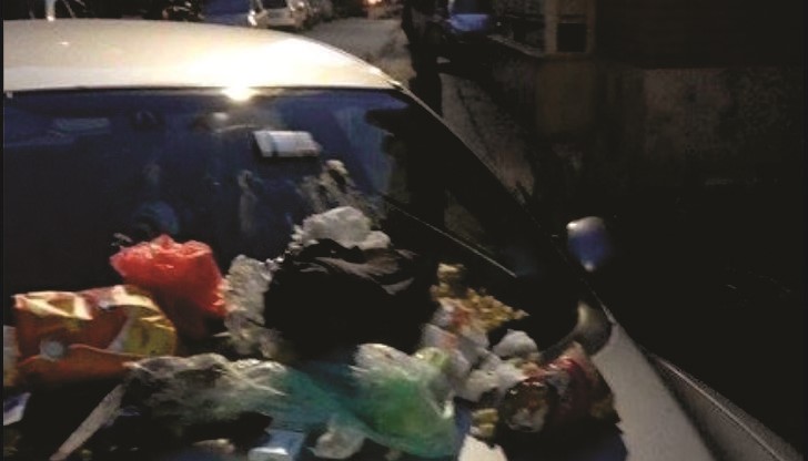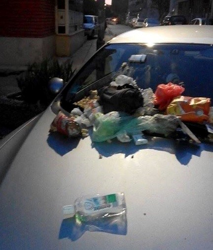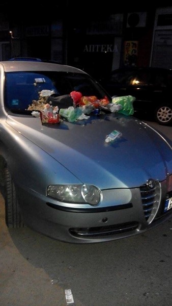 г/ някой не е уцелил кофата за боклук, която се намира на 5 метра от колата
