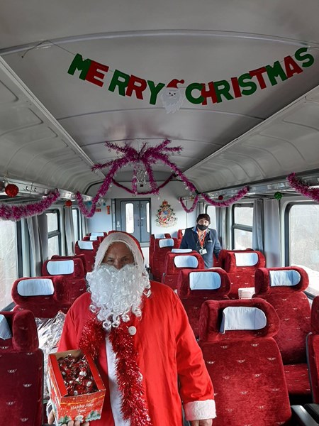 По-рано през деня доброволци от НССБ със съдействието на служители от БДЖ украсиха празнично един от вагоните на сутрешния бърз влак от Варна за София. Така привлякоха вниманието на Дядо Коледа, който се качи на влака от жп гара Плевен с пълен чувал с подаръци за децата от преходно жилище, центрове за настаняване от семеен тип и Дневен център за деца с увреждания в град Роман.