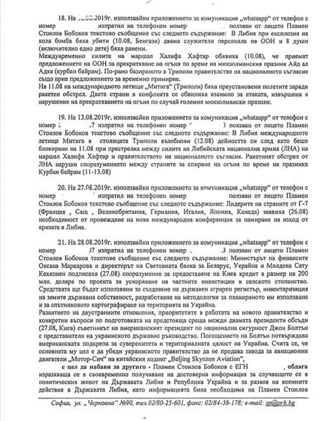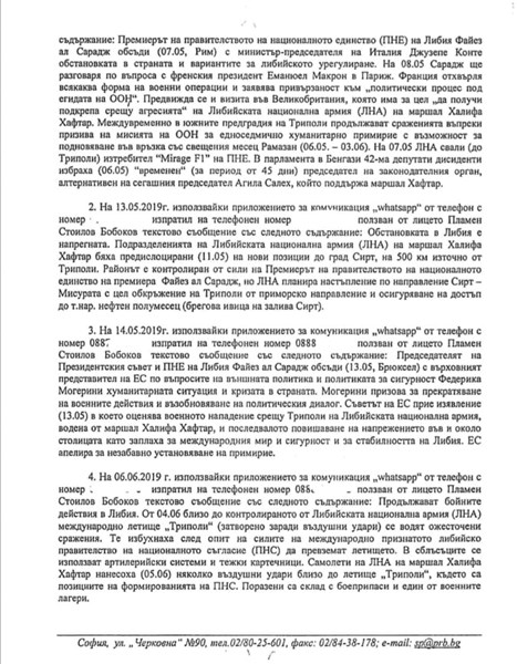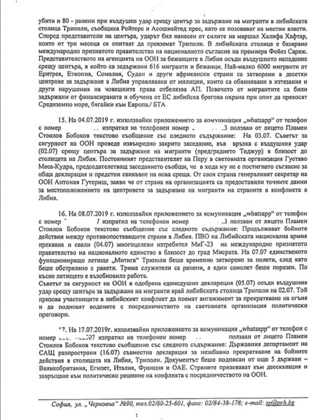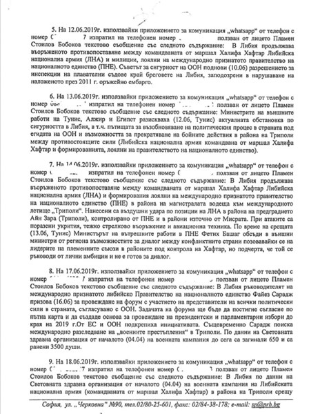 Видно от Постановлението, Пламен Бобоков бе арестуван за трети път, в рамките на около месец, затова, че е получил информация за ситуацията в Либия, „с която не е можел да се сдобие по правомерен начин“, пише Либерта.
