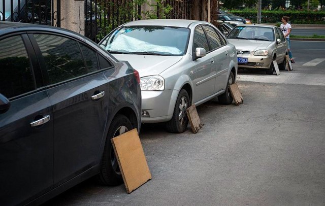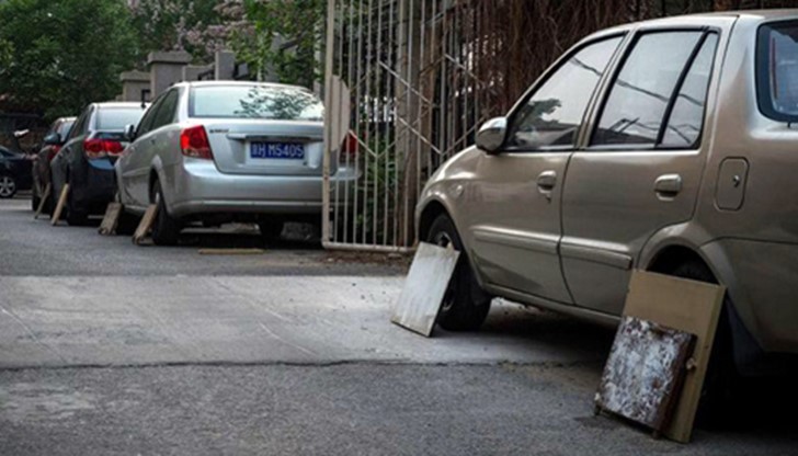 Странна шофьорска практика буди любопитството на чужденците в Китай напоследък. Гумите на все повече автомобили по улиците на най-многолюдната държава на планетата са покрити с парчета шперплат, стари вратички от шкафове или други плоскости.