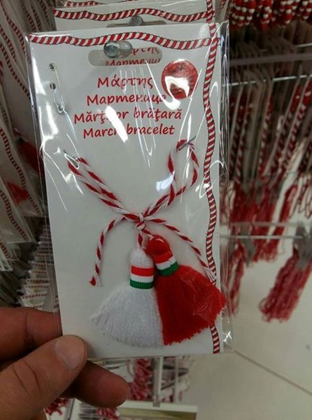 Читател, който е изпратил снимка на въпросните мартеници, е възмутен, че древният български символ е украсен с трибагреник, но този на Унгария!