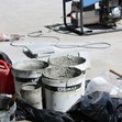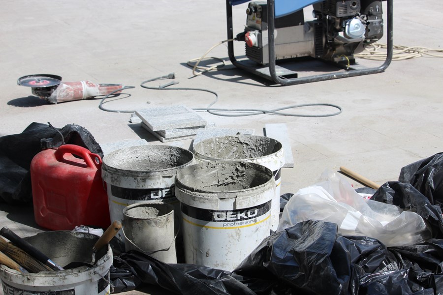 Под една дебела сянка стояха и няколко служители на реда с тъмни очила и скръстени ръце. Да, имаше настроение, гарнирано от масичка и реклама на предстоящ концерт в еблематичната зала Арена Русе. Показвам и оръдия на труда.