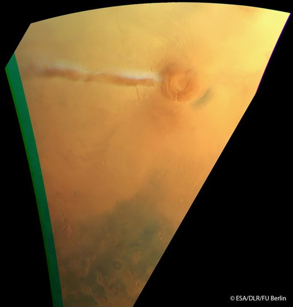 На всеки няколко земни години според сезонните условия на Марс, се появяват облаци от воден лед, когато наситеният с влага въздух се издига по склоновете на вулкана. Mars Express засне подобни изображения през 2009, 2012 и 2015 г. Така че това изображение не е изненада.