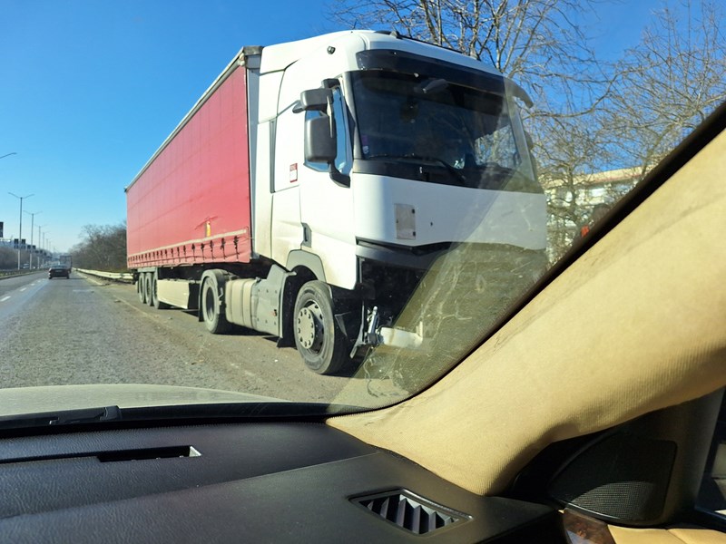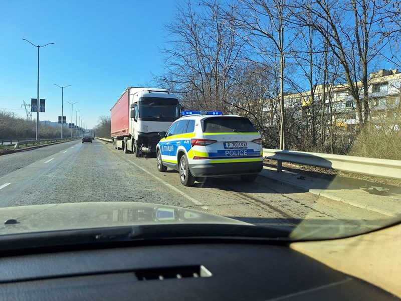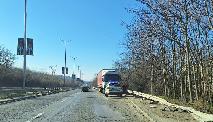 След загуба на контрол над превозното средство, тирът се е ударил в мантинелата и е преминал през разделителната ивица, озовавайки се в лентите за движение към София. При сблъсъка с еластичната преграда, предната част на камиона е претърпяла сериозни материални щети, информира Русе Медиа.