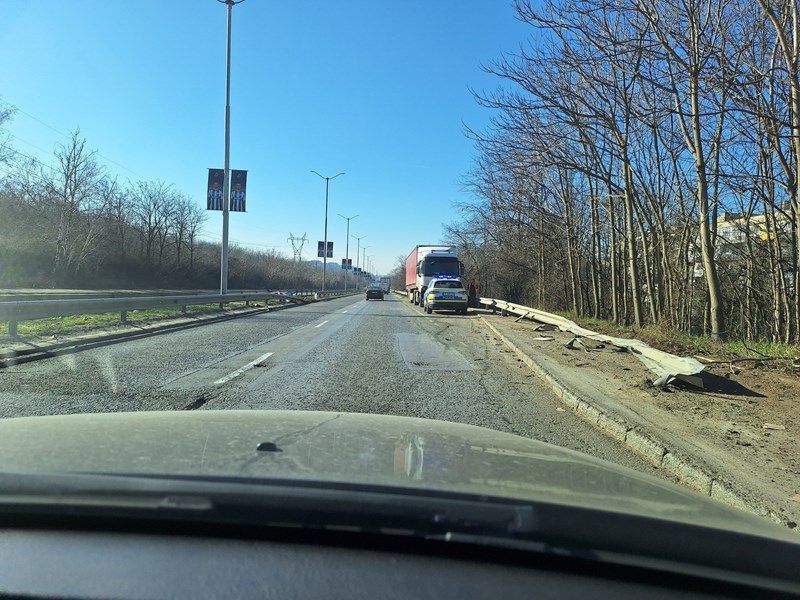 Заспал румънски шофьор прегази мантинели на булевард "България" и се озова в насрещното