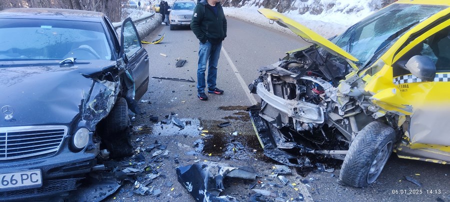 Силата на удара е била значителна, за което свидетелстват щетите по автомобилите - счупено челно стъкло на таксито и предна броня, изхвърлена на метри от мястото на сблъсъка.