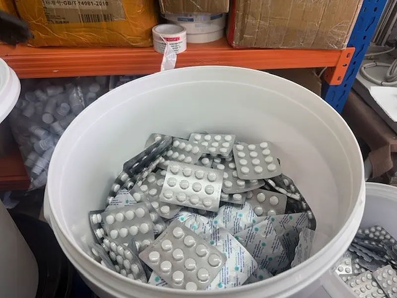 В София органите на реда са разбили незаконна производствена база за фалшиви анаболни стероиди, лекарства и хранителни добавки. В четири помещения, стопанисвани от мъж с криминално минало, са намерени машини за таблетиране, ампули с течност и суровини. Конфискувани са над 200 кашона, "съдържащи над милион хапчета", съобщават от МВР. Продуктите са пласирани чрез интернет сайт и страници в социалните мрежи, като са били брандирани с името на напълно измислен производител. Задържаният има предишна полицейска регистрация от 2022 година за идентично престъпление.
