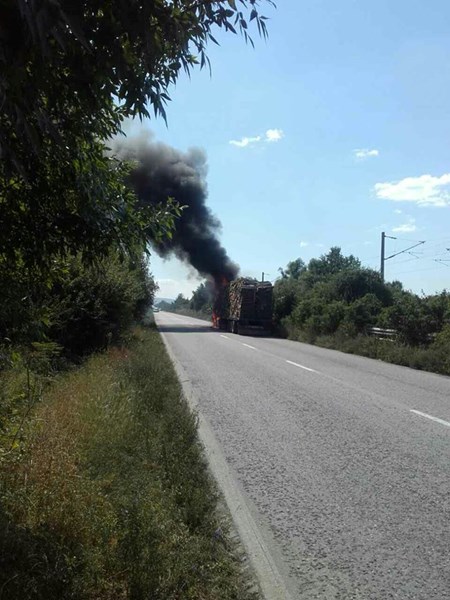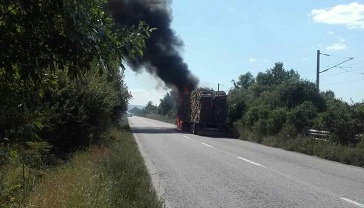 Търговишки ТИР, пълен с дървен материал, се запали току-що на пътя Антоново – Велико Търново.