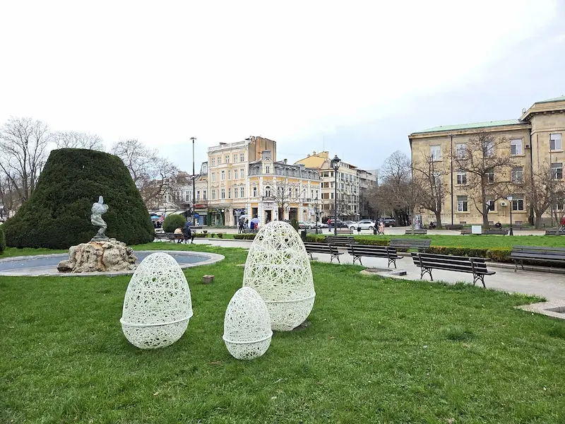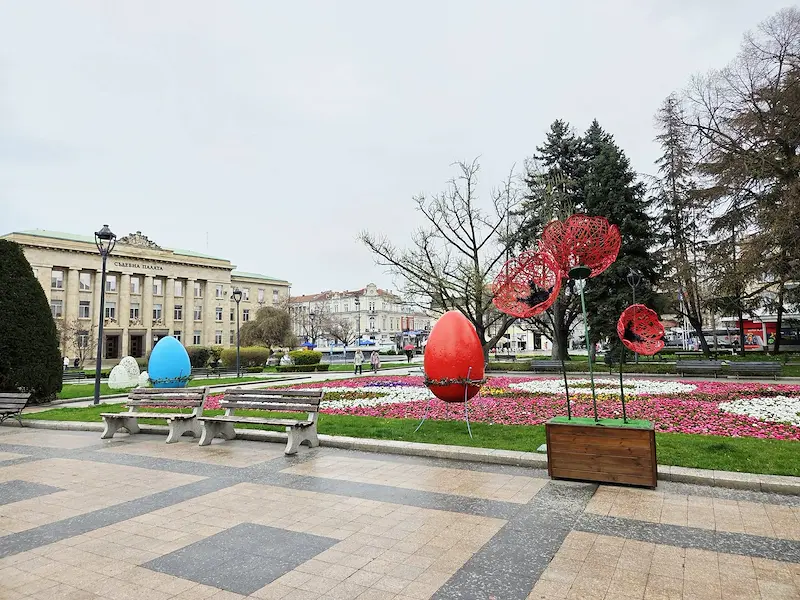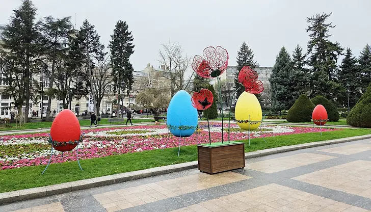 Пред Паметника на Свободата вече е издигната голяма декоративна арка с цветя. Като напълно нов елемент за 2026 година към визията са добавени четири обемни бели яйца от фибростъкло с различни височини, както и специална многофункционална рамка за снимки. Новата украса ще създаде празничен фон и за предстоящото 35-о поредно Великденско хоро, което ще се извие в сърцето на града на 12 април с участието на танцьорите от ФТТ "Найден Киров".