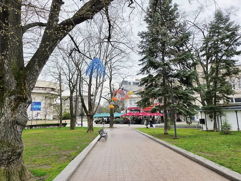 Алеите в близост до шадравана пред сградата на Община Русе са осветени и допълнени с декоративни цветя, птици и чадъри. Те оформят атрактивна визуална композиция тип "небе". Основен акцент в градската градина са 10 големи обемни яйца. Те са изрисувани в различни цветове и са разположени върху специални стойки, създавайки пъстър контраст на фона на зеленината.