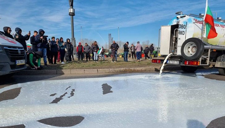 Земеделски производители блокираха „Дунав мост“ при Русе и разляха цистерна с мляко.