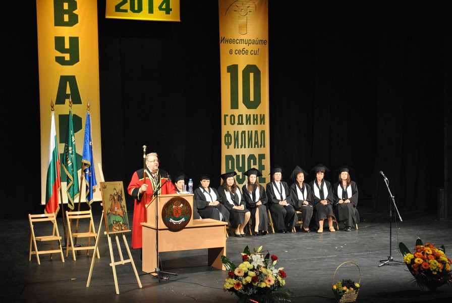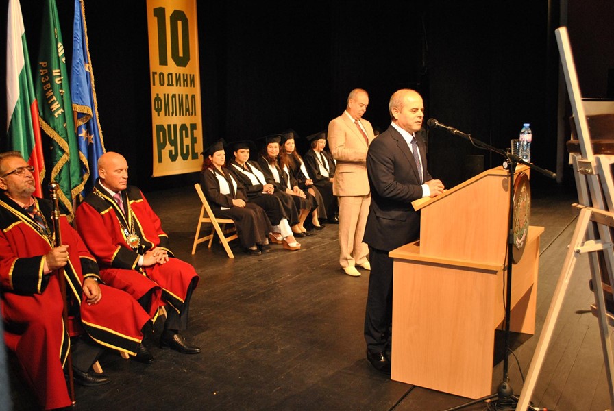 „Висшето училище по агробизнес и развитие на регионите утвърди по категоричен начин своето присъствие в Русе. Впечатлен съм от все по-високия процент ваши кадри, които се реализират изключително успешно във всички сфери на административните структури и бизнеса“, каза в обръщението си г-н Стоилов. Той пожела на завършващите днес висшисти да гонят високи цели и да бъдат безспорен образец в професионалната си и трудова дейност.