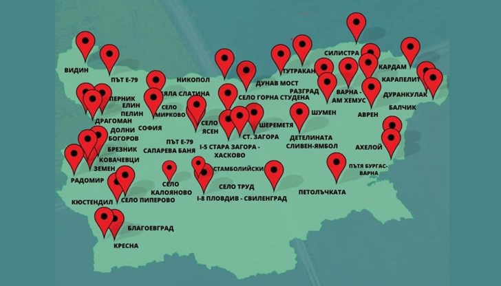 - Североизточна България: Кардам, Дуранкулак, кръговото на Балчик, Карапелит, Тутракан, Разград, Шумен (бензиностанция Петрол), Силистра;