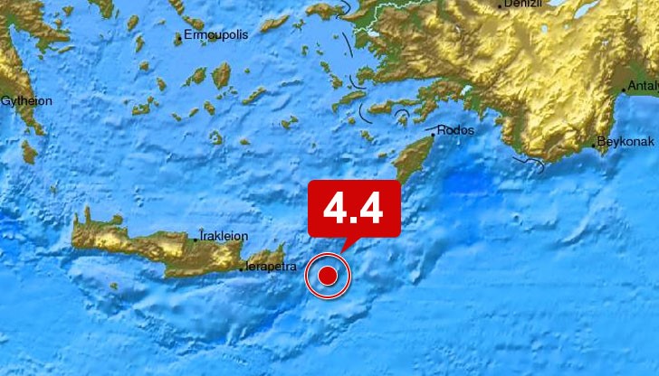 Земетресение с магнитуд 4,4 по Рихтер е регистриран снощи в морския район югоизточно от гръцкия о-в Крит, съобщава електронното издание Нюз.ин.