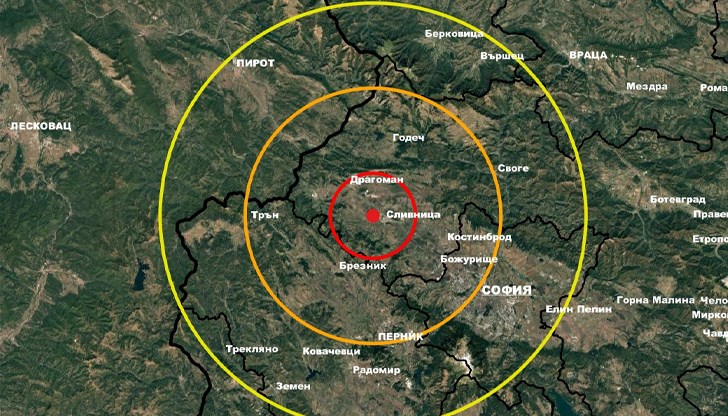 Епицентърът на земетресението е локализиран на около 30 километра от столицата София, в района на град Сливница, област София