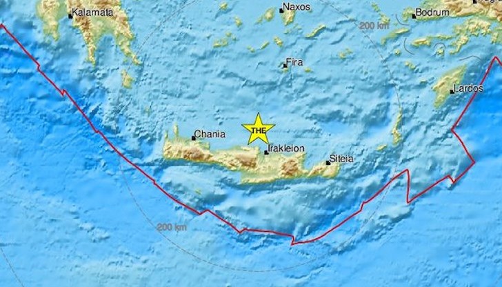 Земетресение с магнитуд от 4,1 е регистриран в 9,48 часа днес край остров Крит