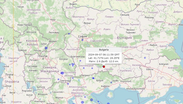 Земетресение с магнитуд 2.9 по Рихтер е регистрирано в района на град Девин на днес в 09:11 часа българско време.