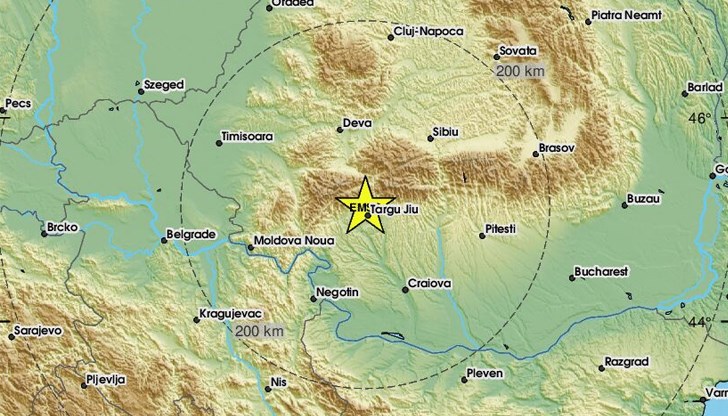Земетресение с магнитуд 4.1 по скалата на Рихтер е регистрирано в Румъния днес в 14:18 часа българско време. Епицентърът на труса се намира на 9 километра северозападно от град Търгу Жиу и на 73 километра север-североизточно от Дробета-Турну Северин, съобщи Европейско-средиземноморският сеизмологичен център (EMSC).