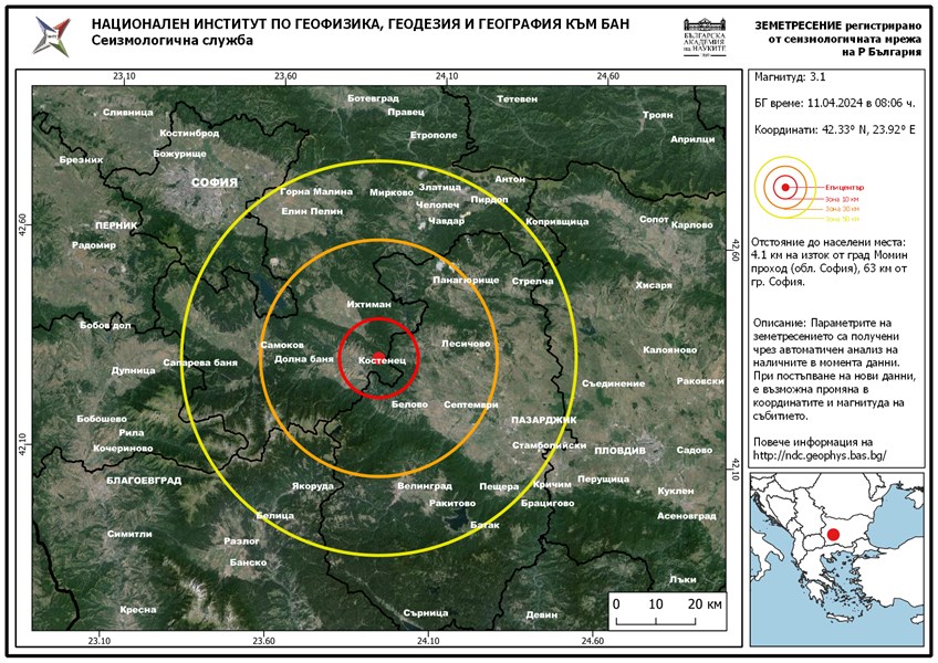 Трусът е регистриран в 08:06 часа в района на град Ихтиман