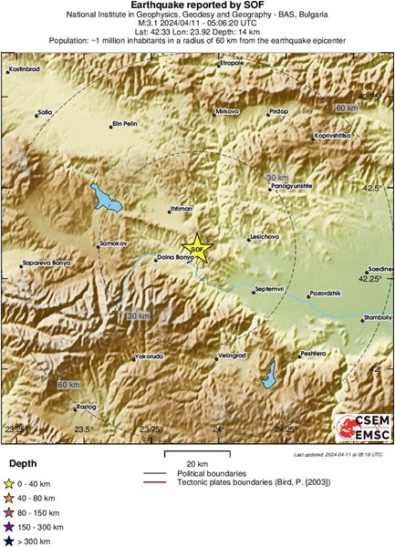 Това показва справка на официалната интернет страница на Европейския средиземноморски сеизмологичен център (EMSC).