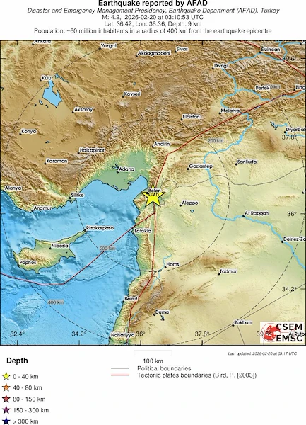 Земетресение с магнитуд 4.2 по скалата на Рихтер събуди жителите на южния турски окръг Хатай рано тази сутрин. Трусът удари региона в 06:10 часа местно време (05:10 часа българско време), напомняйки за постоянния сеизмичен риск в зоната.