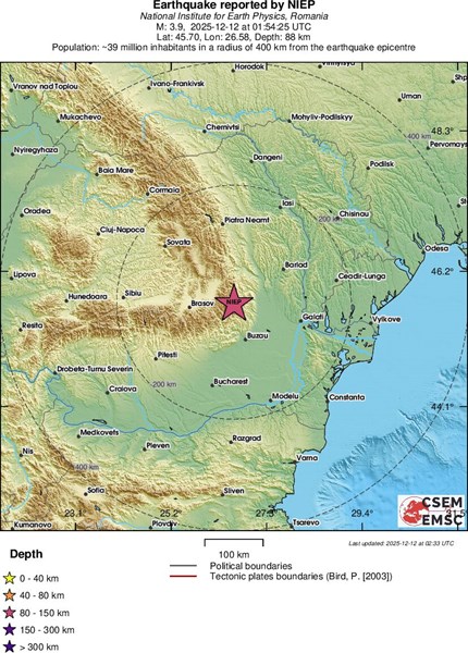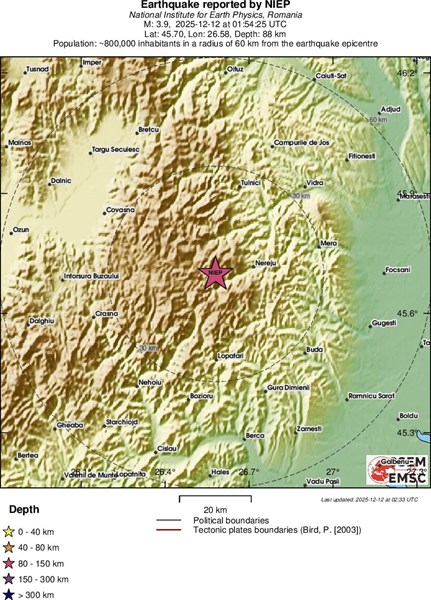 Според данните на сеизмолозите, земетресението е с магнитуд 3.9 по скалата на Рихтер. Епицентърът е локализиран на дълбочина от 87.7 километра.