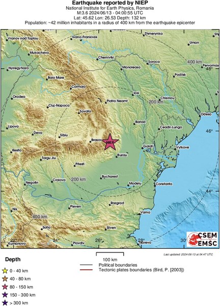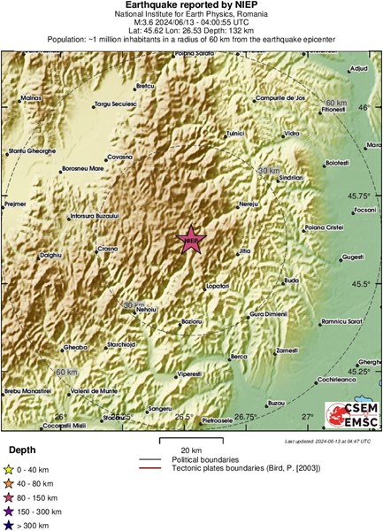 Земетресение с магнитуд 3.6 по Рихтер разтърси сеизмична зона Вранча в Румъния.