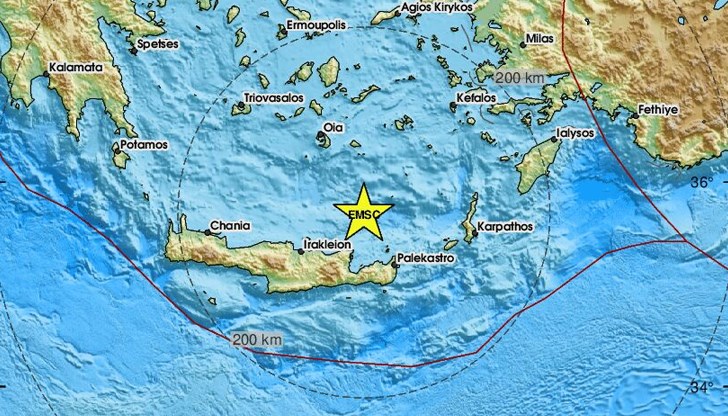 Силно земетресение с магнитуд 6.1 по скалата на Рихтер беше регистрирано край гръцкия остров Крит в ранните сутрешни часове днес. Трусът е станал в 03:19 часа по Гринуич (06:19 часа местно време), съобщи Европейският средиземноморски сеизмологичен център (EMSC).