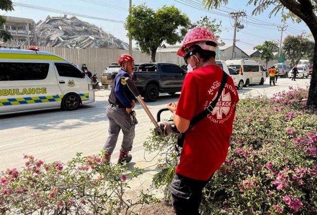 Спасителят Сонгвут Уангпон, цитиран от Асошиейтед прес, съобщи пред репортери, че седем души са били извадени живи от развалините, които някога са били многоетажна сграда в строеж.