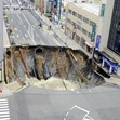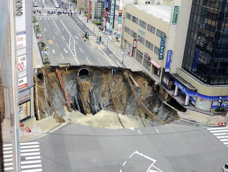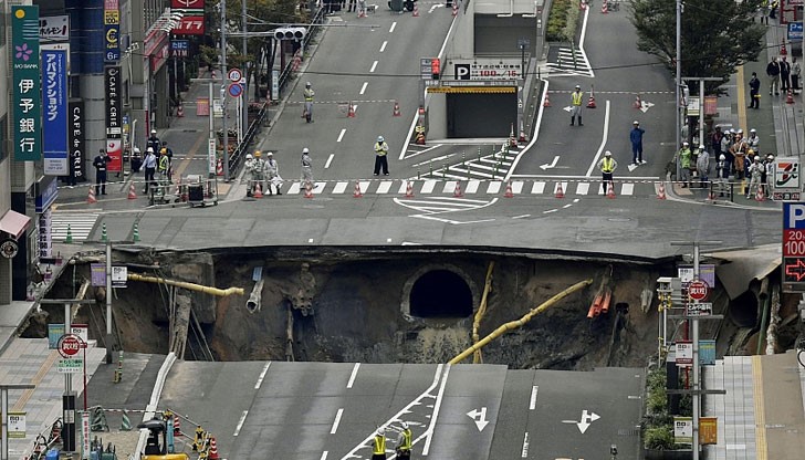 Гигантска дупка се отвори край железопътната гара в японския град Хукуоса, намиращ се в близост до летището.