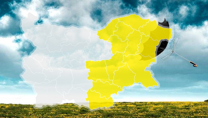 Жълт код за силен вятър е в сила за 13 области на страната за 8 август, сочи справка на сайта на НИМХ