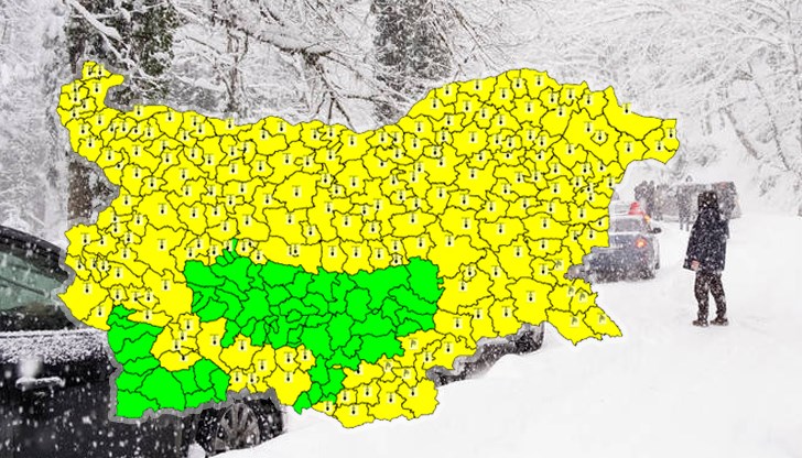 Националният институт по метеорология и хидрология обяви за утре, 9 януари, предупреждение от първа степен - жълт код, за ниски температури в цялата страна и за силен север-североизточен вятър с пориви до 20 метра в секунда в Източна България.
