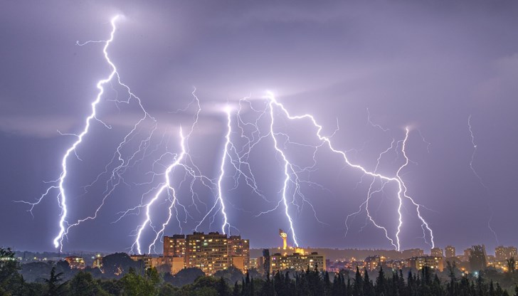 Жълтият код за утре за значителни валежи и за гръмотевични бури е за 15 области на страната. Сред тях е и София-град.