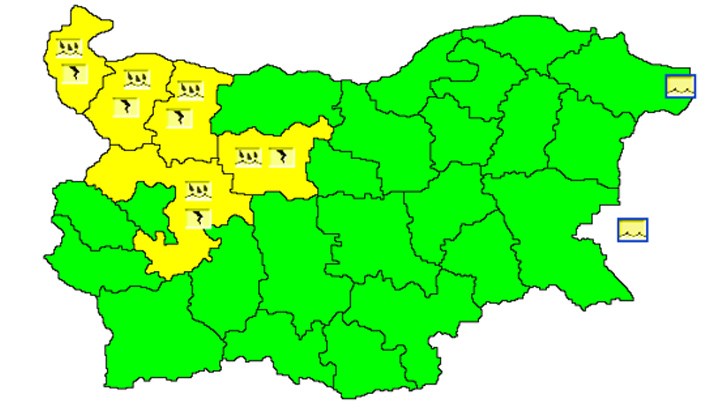 Жълт код за дъжд и гръмотевична дейност за областите Видин, Монтана, Враца, София и Ловеч издаде за днес Националният институт по метеорология и хидрология.