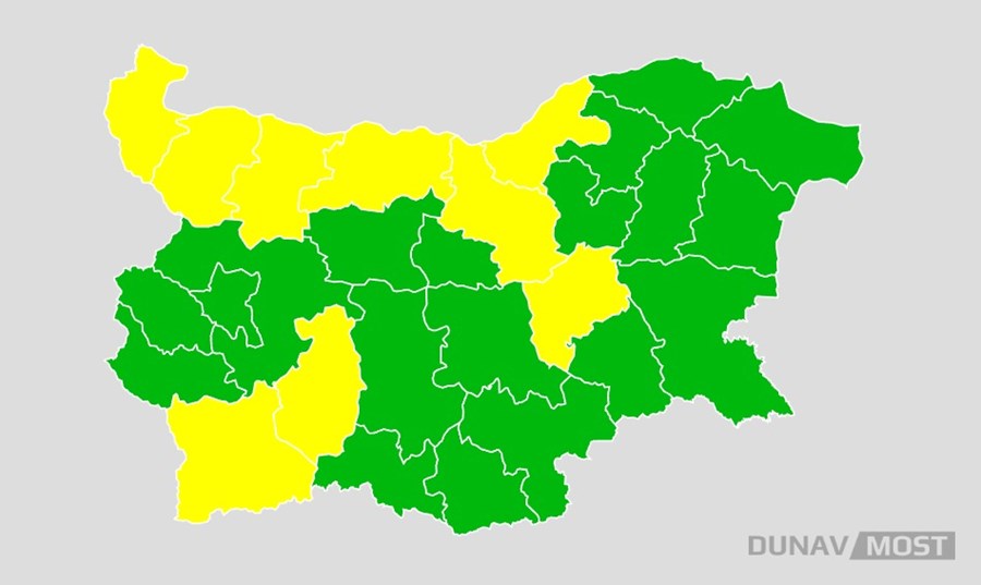 Националният институт по метеорология и хидрология (НИМХ) обяви жълт код за силен вятър в девет области на страната за утре, 11 октомври. Предупреждението важи за Видин, Монтана, Враца, Плевен, Велико Търново, Русе, Сливен, Пазарджик и Благоевград.