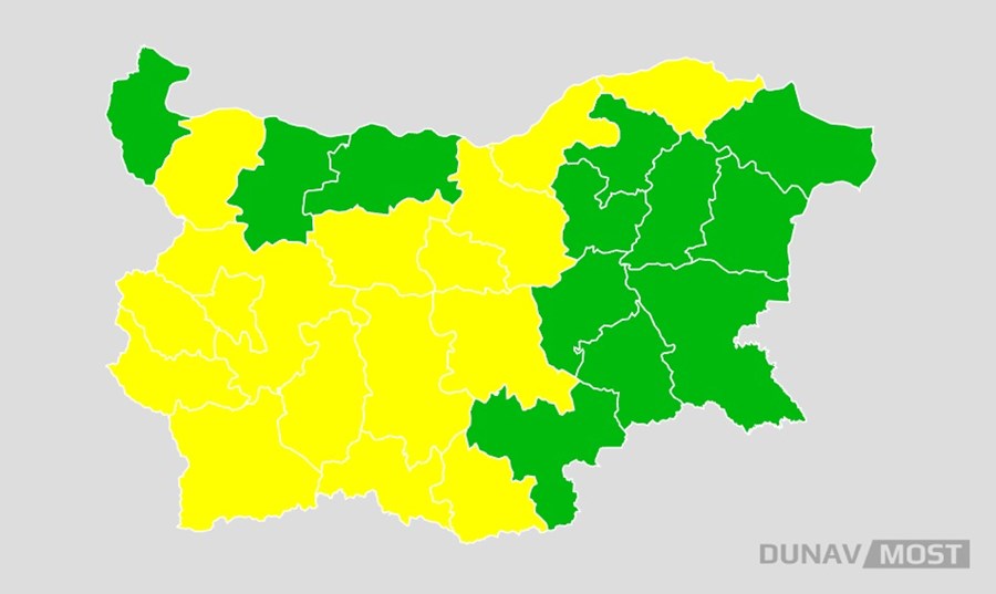 В същото време, в областите Велико Търново, Русе и Силистра, жълтият код е заради прогнозирани високи температури, които ще се движат между 35 и 37 градуса. За страната като цяло, максималните температури ще варират между 31 и 37 градуса, като в София се очаква около 28 градуса.