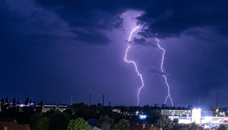 Жълт код за интензивни валежи, гръмотевични бури и градушки е обявен за 8 области на страната - Видин, Монтана, Враца, София, София-област, Кюстендил, Перник и Благоевград.