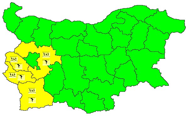Тези четири области в Югозападна България, за които утре ще има жълт предупредителен код, са: София област, Перник, Кюстендил и Благоевград.