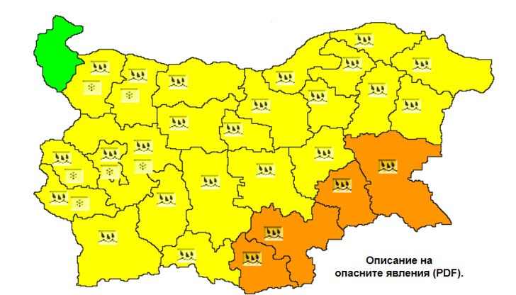Националният институт по метеорология и хидрология /НИМХ/ издаде за утре предупреждение за значителни валежи.