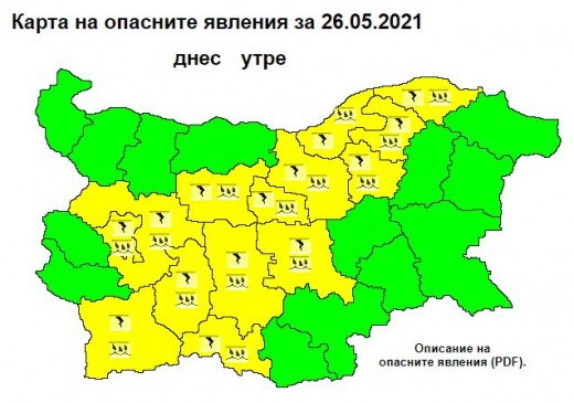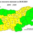 Това сочи справка в сайта на Националния институт по метеорология и хидрология (НИМХ). Жълтият код означава, че времето е потенциално опасно.