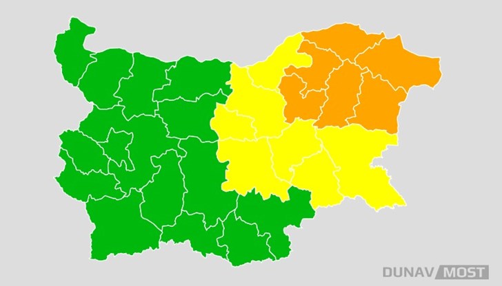 Същевременно в областите Силистра, Разград, Добрич, Варна, Търговище и Шумен е в сила оранжев код за по-опасни условия. Там ветровете ще бъдат по-интензивни и може да доведат до затруднения в ежедневните дейности и пътувания.