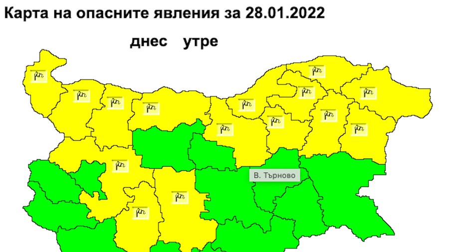 Той е обявен за областите Видин, Монтана, София-област, Враца, Плевен, Пазарджик, Пловдив, Велико Търново, Русе, Търговище, Разград, Силистра, Шумен, Варна и Добрич.