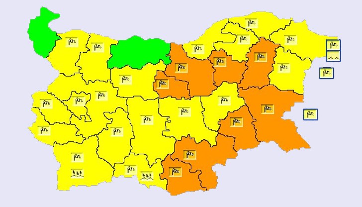 Единствено за областите Видин и Плевен няма издадени предупреждения.