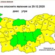 Жълт код за силен вятър е в сила за 22 области в страната за 29 декември.