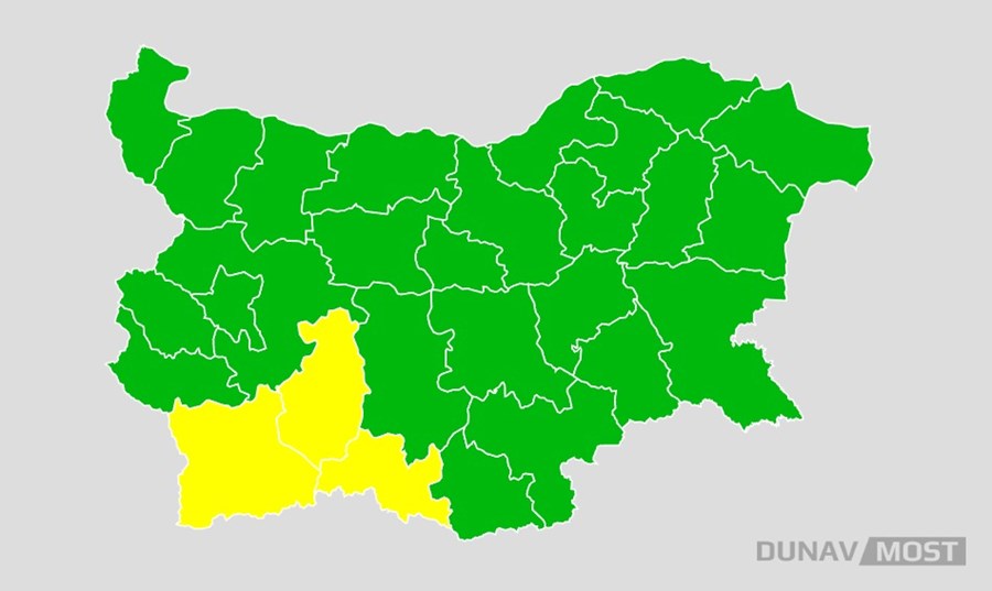 Национален институт по метеорология и хидрология (НИМХ) издаде жълт код за значителни валежи с гръмотевици за три области в страната. Предупреждението е в сила за утре, 13 май, за областите Благоевград, Пазарджик и Смолян.