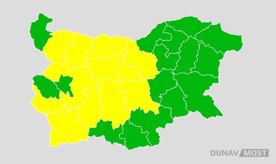 В неделя на много места ще има краткотрайни валежи с гръмотевици, като по-значителни ще са в Западна и Централна Северна България. Жълт код за опасно време е обявен в 12 области, като очакваните валежни количества ще достигнат около 35 литра на квадратен метър в повечето райони, а в югозападните – около 25 литра на квадратен метър. Предупреждението е в сила за определени общини на областите Монтана, Враца, Плевен, Велико Търново, Габрово, Стара Загора, Пазарджик, Пловдив, Ловеч, София – област, Кюстендил и Благоевград.