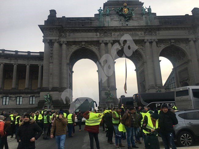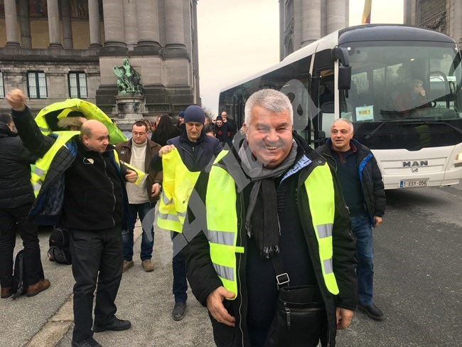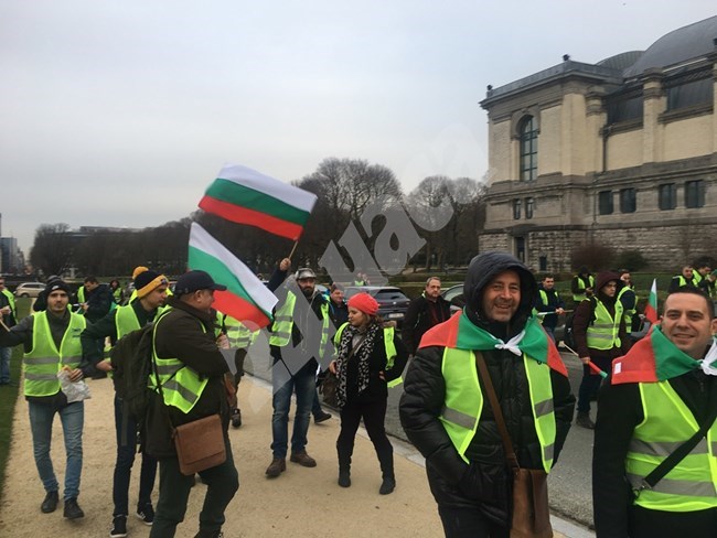 Над 600 работещи в транспортния бранш у нас надянаха жълти жилетки и с развети трикольори поеха пеша към Европарламента на площад "Люксембург".