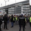 Напрежението отново ескалира, като "жилетките" започнаха да хвърлят камъни и бутилки и се наложи полицията да използва сълзотворен газ, за да установи ред.