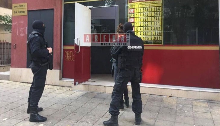 Жандармерия и специални полицейски части извършват едновременно акции в заложна къща „Монарх“ в Русе и в кафене „Монарх“.